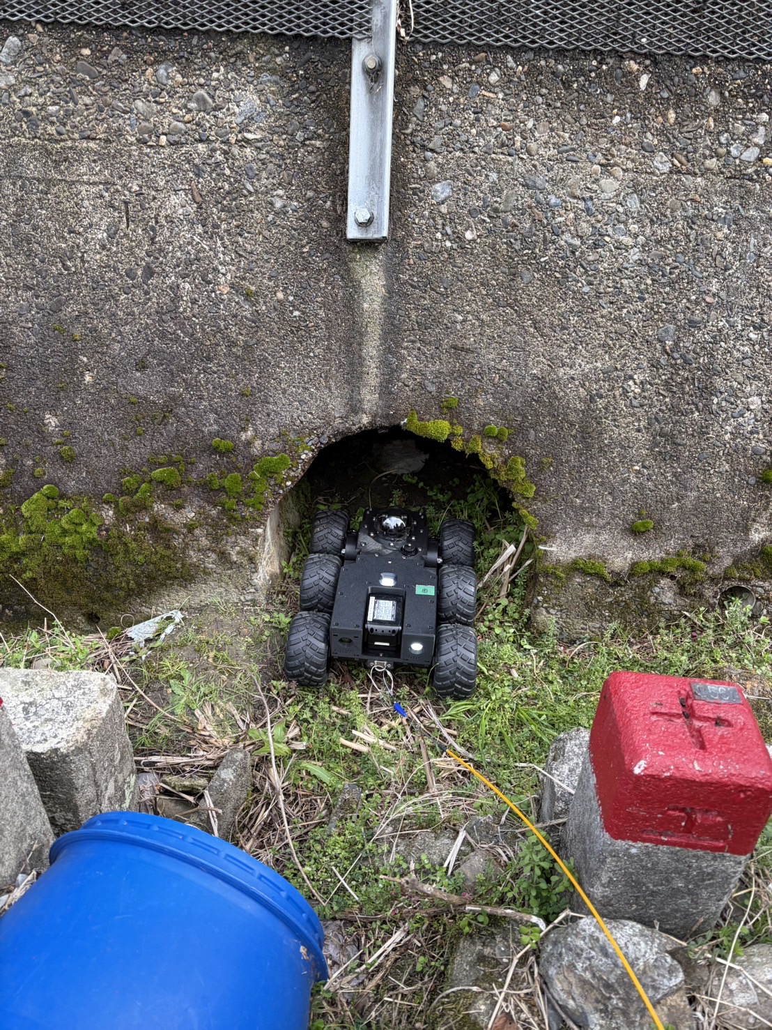 ドローンに高圧洗浄ノズルを取り付け高所での高圧洗浄を行なっています。